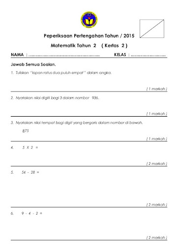 Peperiksaan Pertengahan Tahun Matematik Tahun 2 Kertas 2 Kertas Empati Tulisan